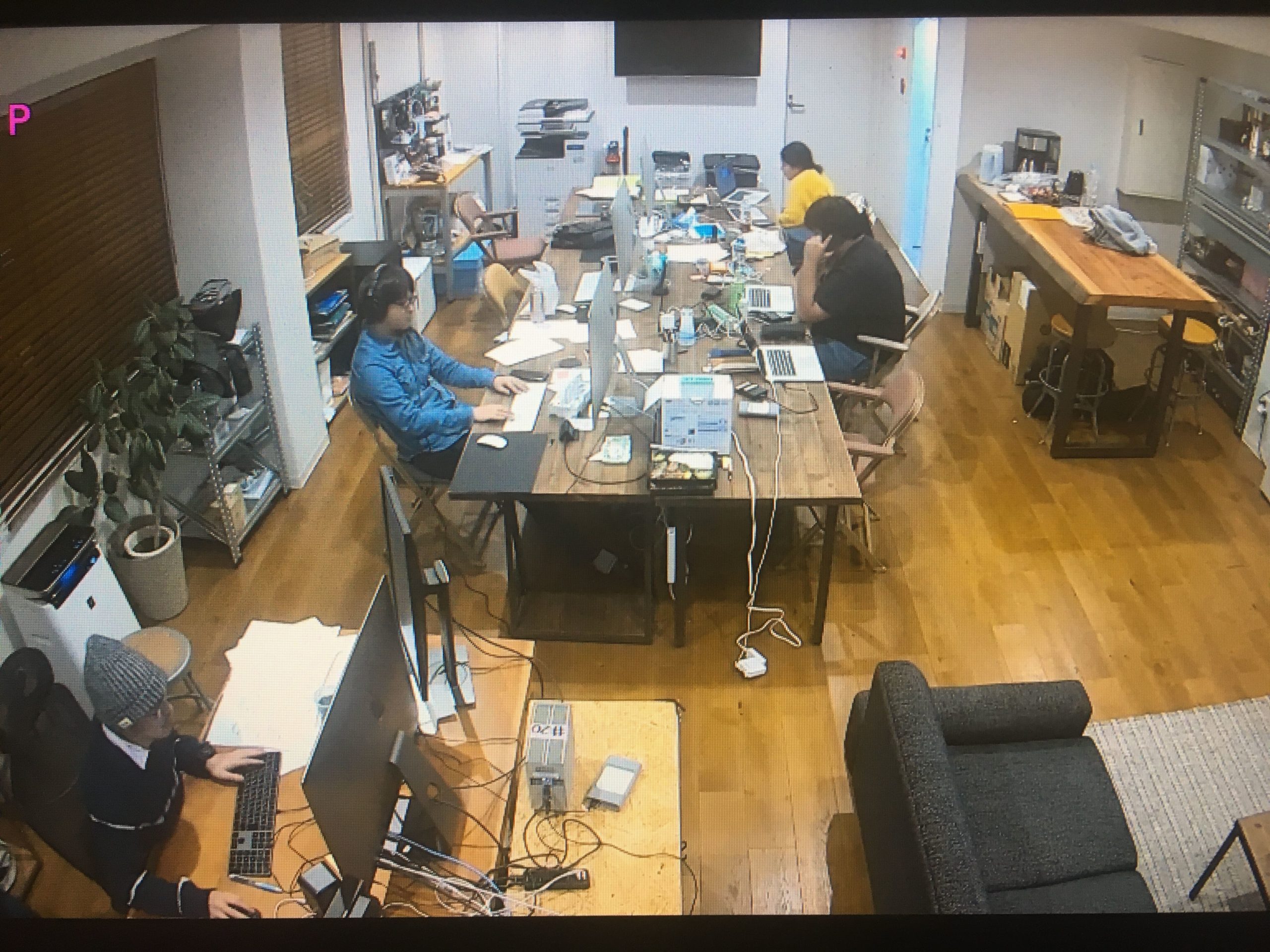 狭い空間でパソコン並べて、何やら作業をしているっぽい…