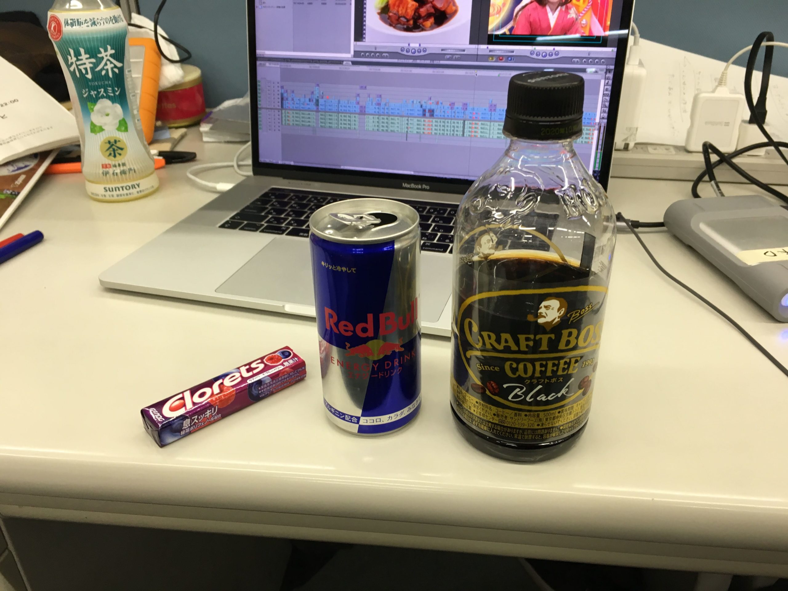 ご飯を食べると眠くなってしまうので、この3種の神器(?)で息をつないでます。