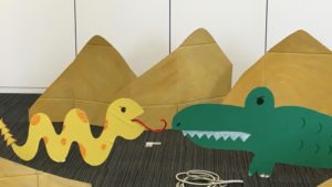 3人がかりで制作し、3日もかかった小学校の学芸会風セットなど、