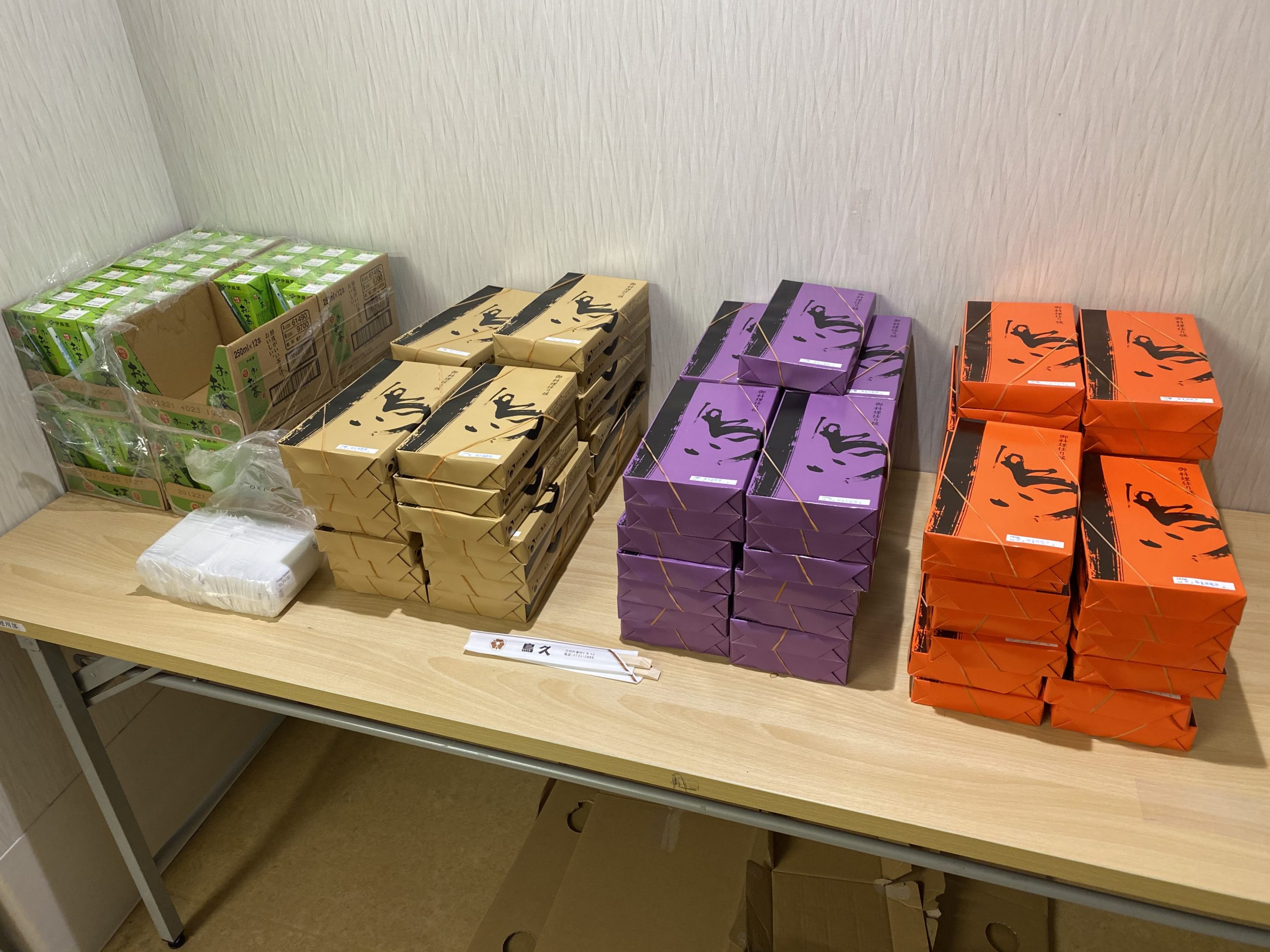 当日、スタジオにこんなにたくさんの弁当が届きます。