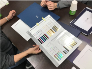 フォントやデザイン、ロゴの箔の色味やケースの素材など