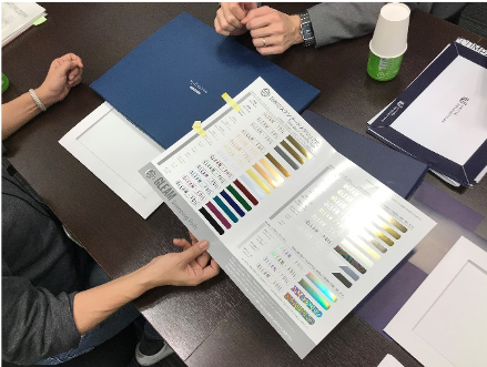 フォントやデザイン、ロゴの箔の色味やケースの素材など