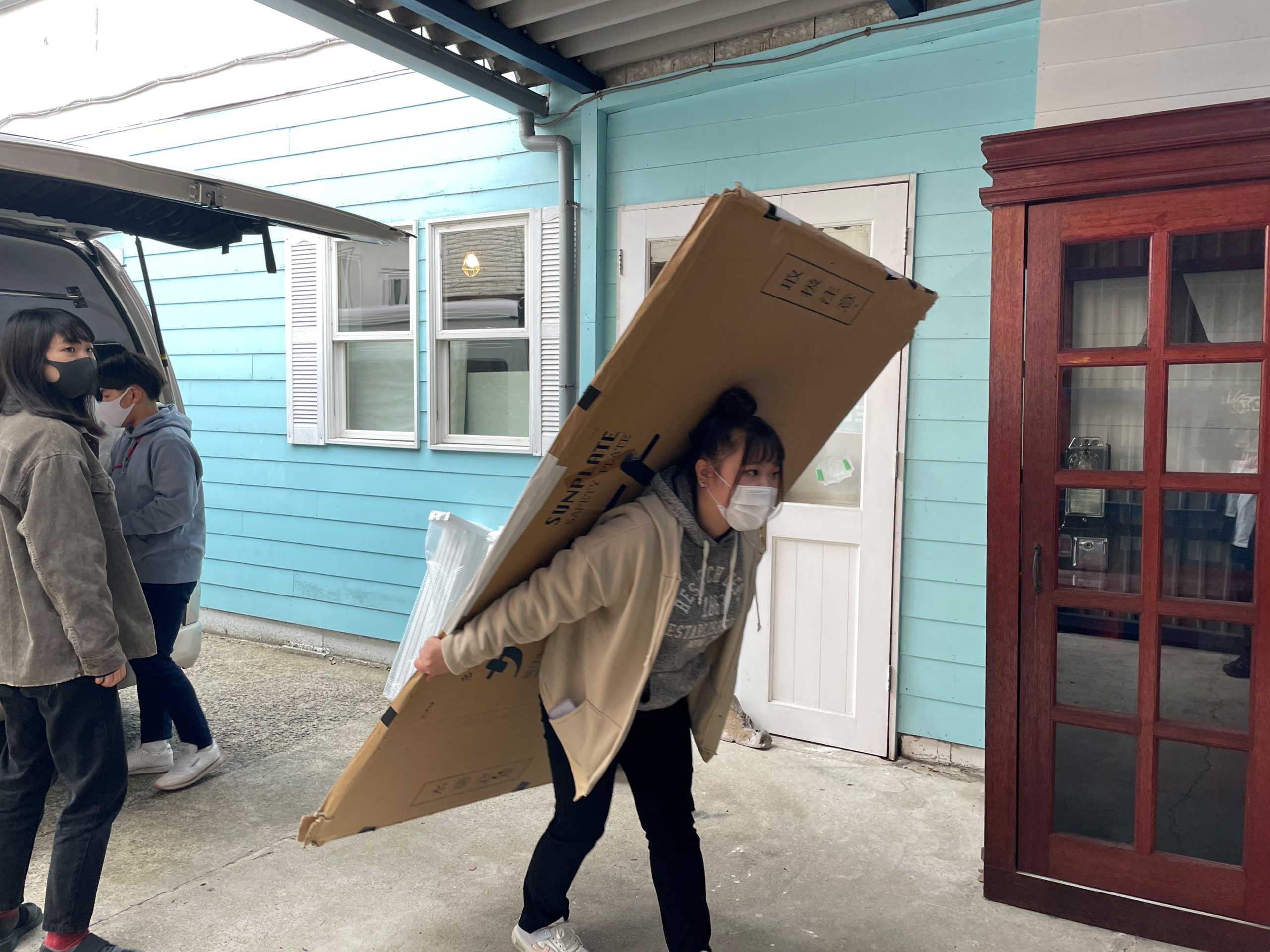 意外と重たいアクリル板もADが頑張って運んでいるんです!!!