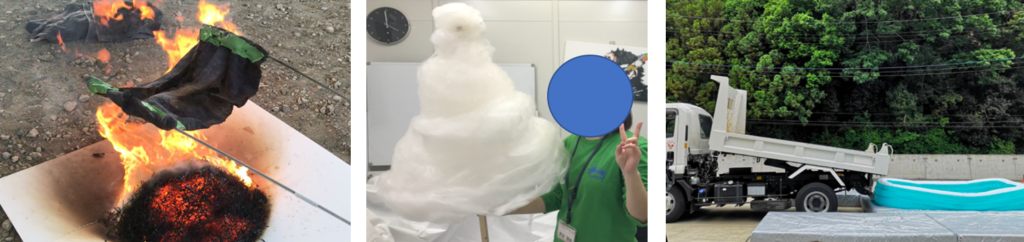 ↑マッチ1000本VS燃えない液体 ↑巨大わたあめの限界 ↑革靴が滑らない方法