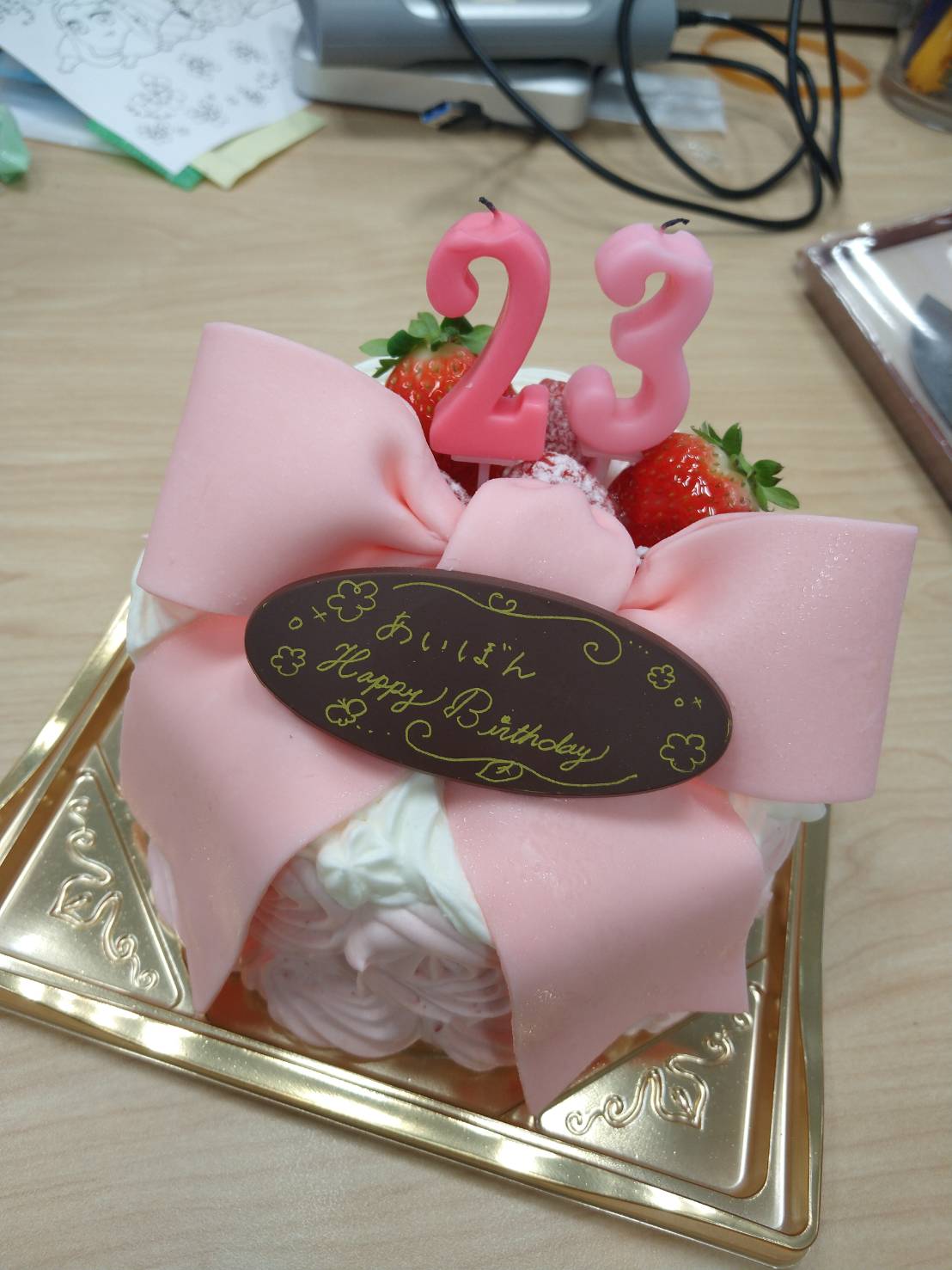 これは先輩と同期が私のお誕生日にサプライズで用意してくれた誕生日ケーキです!