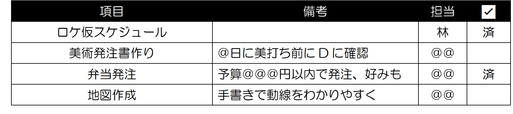 ◎「収録・ロケに向けて作った50項目ほどのやることリスト」を作成